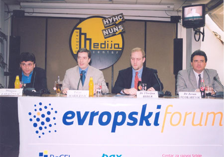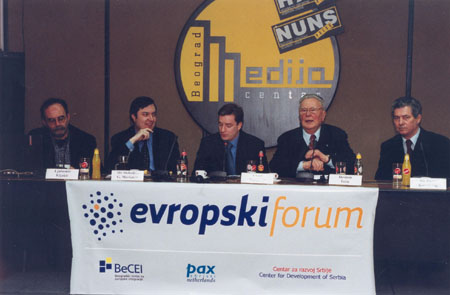 - Панел дискусије ЕФ-а на којима је учествовало по троје познатих стручњака и јавних личности из ЕУ, СЦГ и осталих земаља, који су дискутовали о типичним проблемима везаним за односе ЕУ и СЦГ. Дискусије су одржаване у Медија Центру у Београду, једном месечно уз присуство новинара из штампаних и електронских медија. Модератор је био Лазар Марићевић, председник УО Центра за развој Србије.